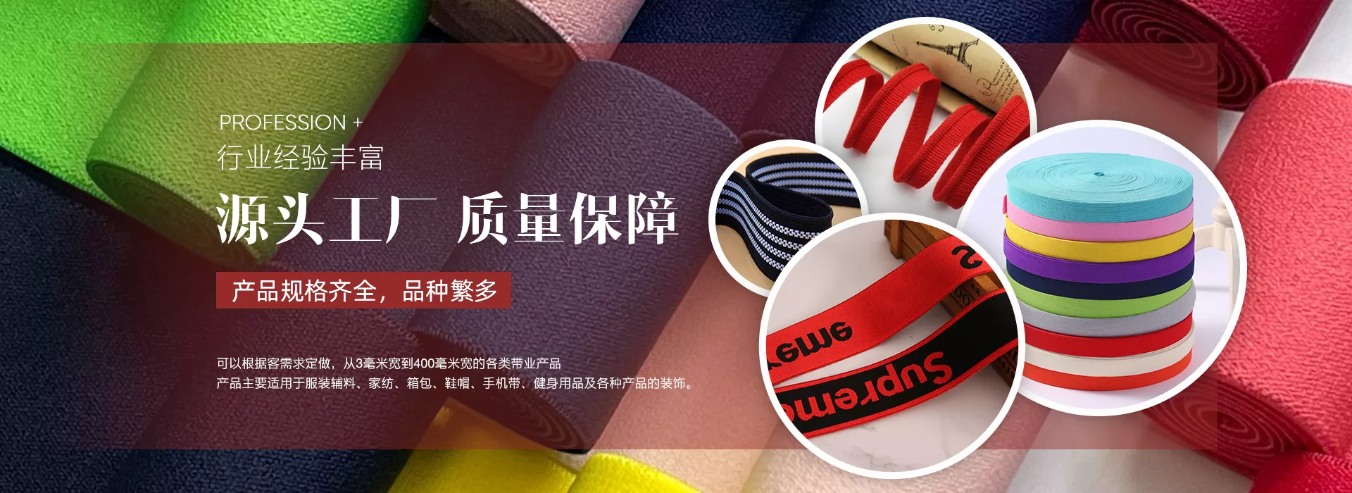 本公司专业生产和销售弹性织带、非弹性织带、原材料涤纶丝、包根千余品种规格的产品、主要产品有针织松紧带、无梭松紧带、电脑提字提花松紧带、无梭织带、提花织带、针织带、箱包带、涤纶纱DTY、包根等,可以根据客需求定做,可以从3毫米宽到400毫米宽的各类带业产品。产品主要适用于服装辅料、家纺、箱包、鞋帽、手机带、健身用品及各种产品的装饰。公司产品规格齐全,品种繁多,能满足不同客户的需求,产品大部分出口,远销中东、非洲、南亚、欧美等国家和地区,深受客户的青睐和好评...